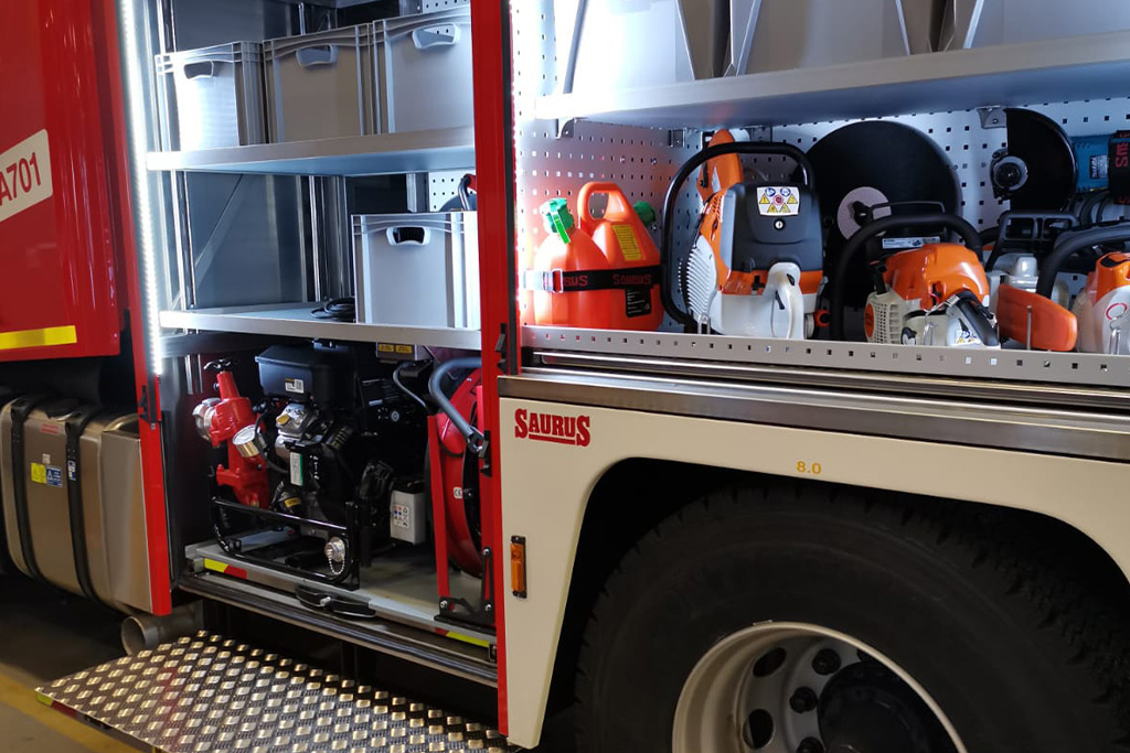Sammutusauto on kiinteällä pumpulla, vesisäiliöllä, 1 + 5 miehistötilalla sekä riittävällä sammutus- ja raivauskalustolla varustettu ajoneuvo.